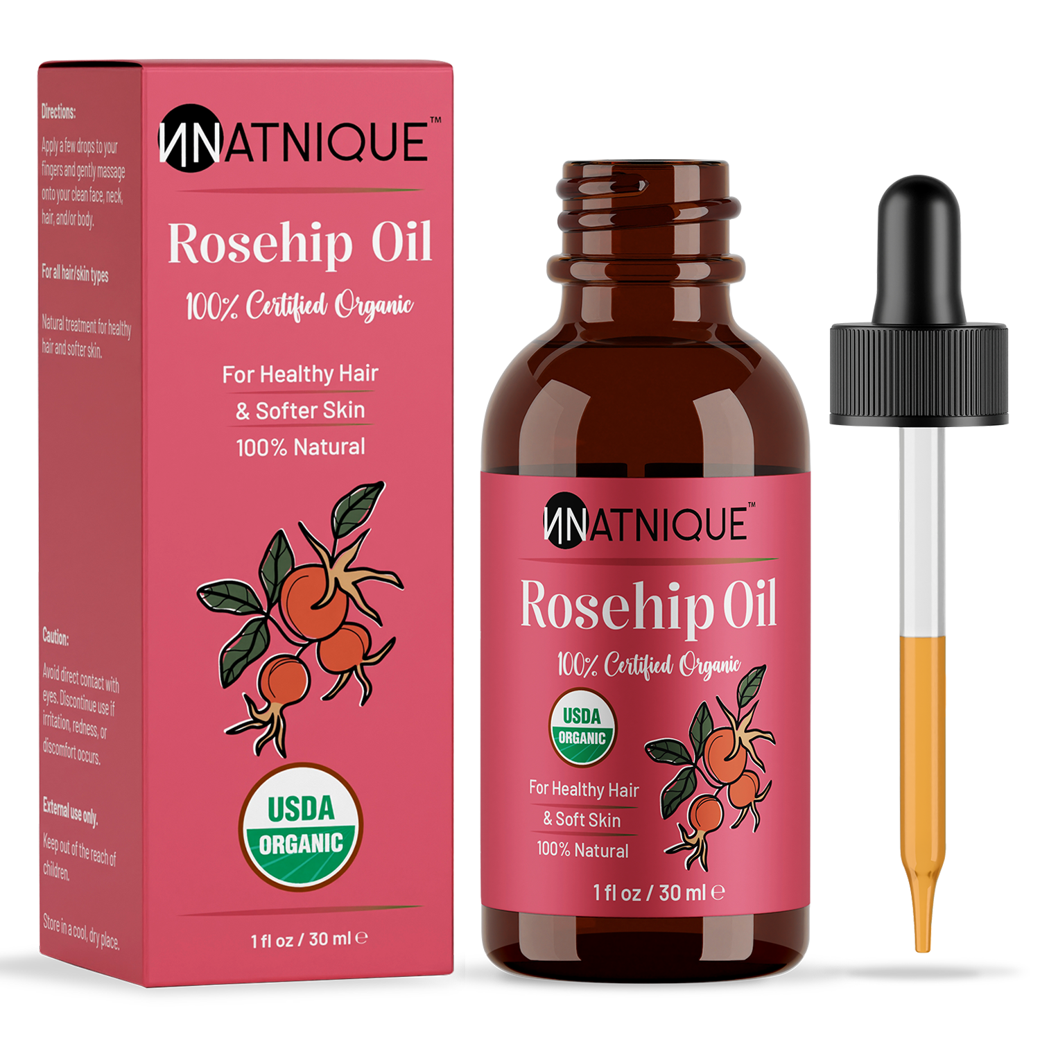 LIGHT NON-GREASY MOISTURIZER FOR SKIN – Natnique’s organic cold pressed rosehip seed oil is 100% pure, natural, and certified by USDA. Rosehip oil for face is a natural moisturizer to hydrate and moisturize your skin for a natural looking glow.
