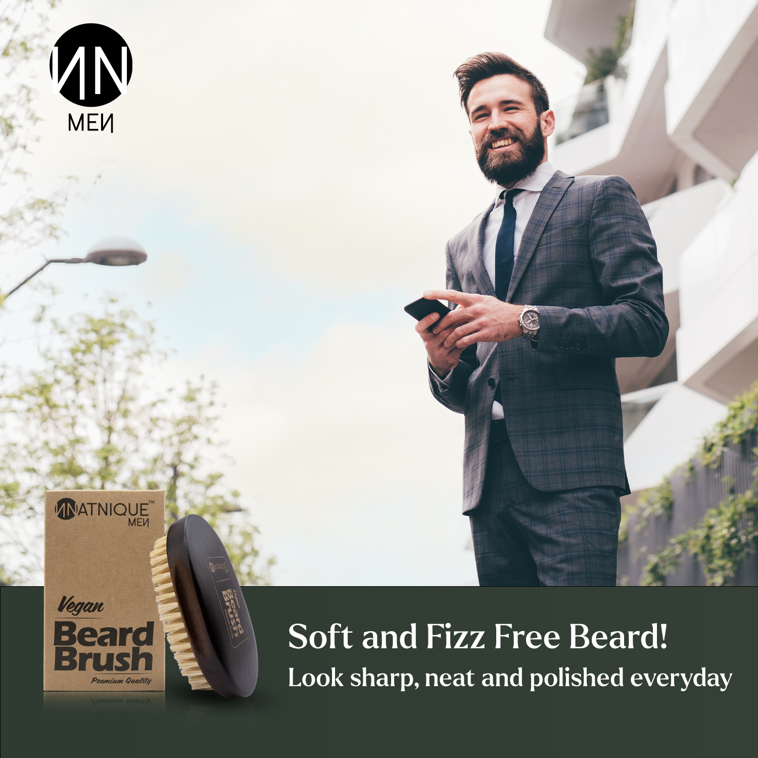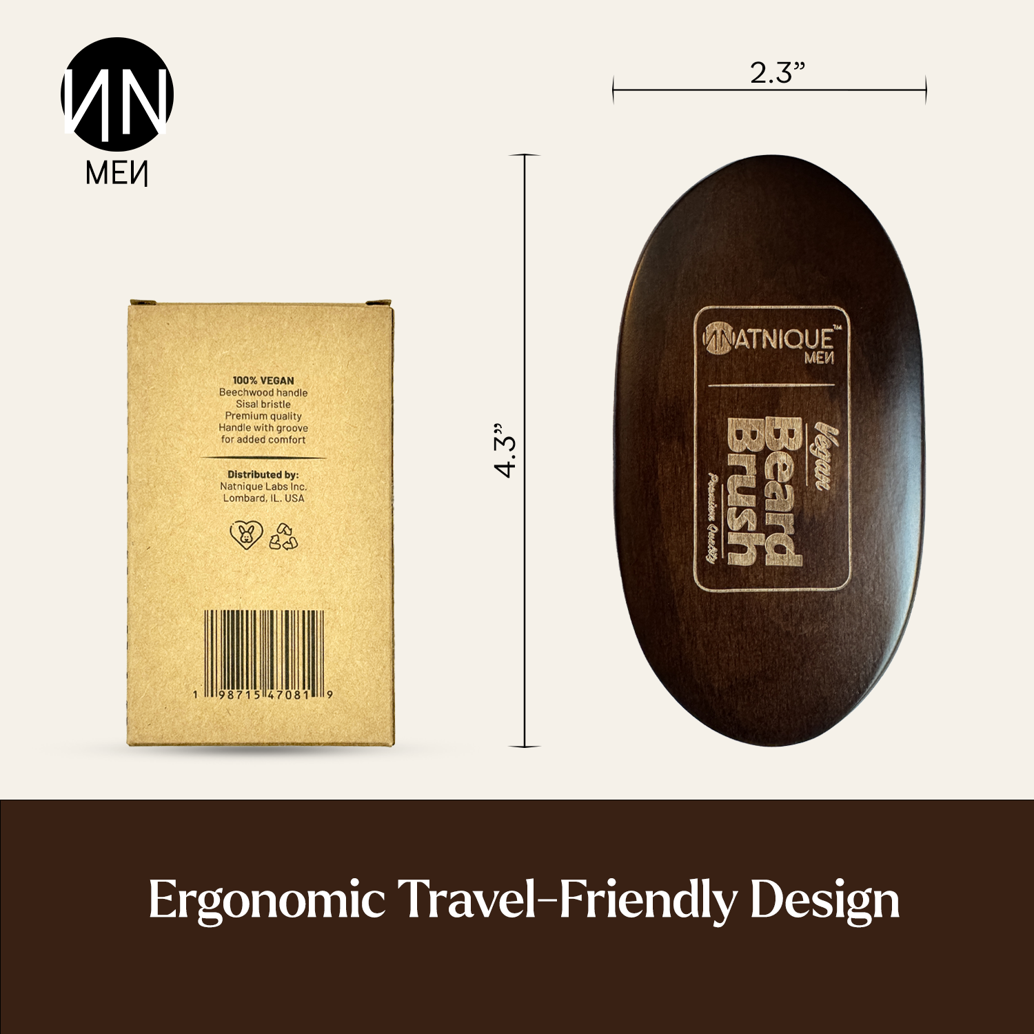 Natnique Vegan Beard Brush for Men, 100% Sisal Plant Bristles, Ergonomic Design with Natural Beachwood Handle - Men's Beard & Mustache Brush – 100% Natural, Non-Synthetic, Cruelty Free